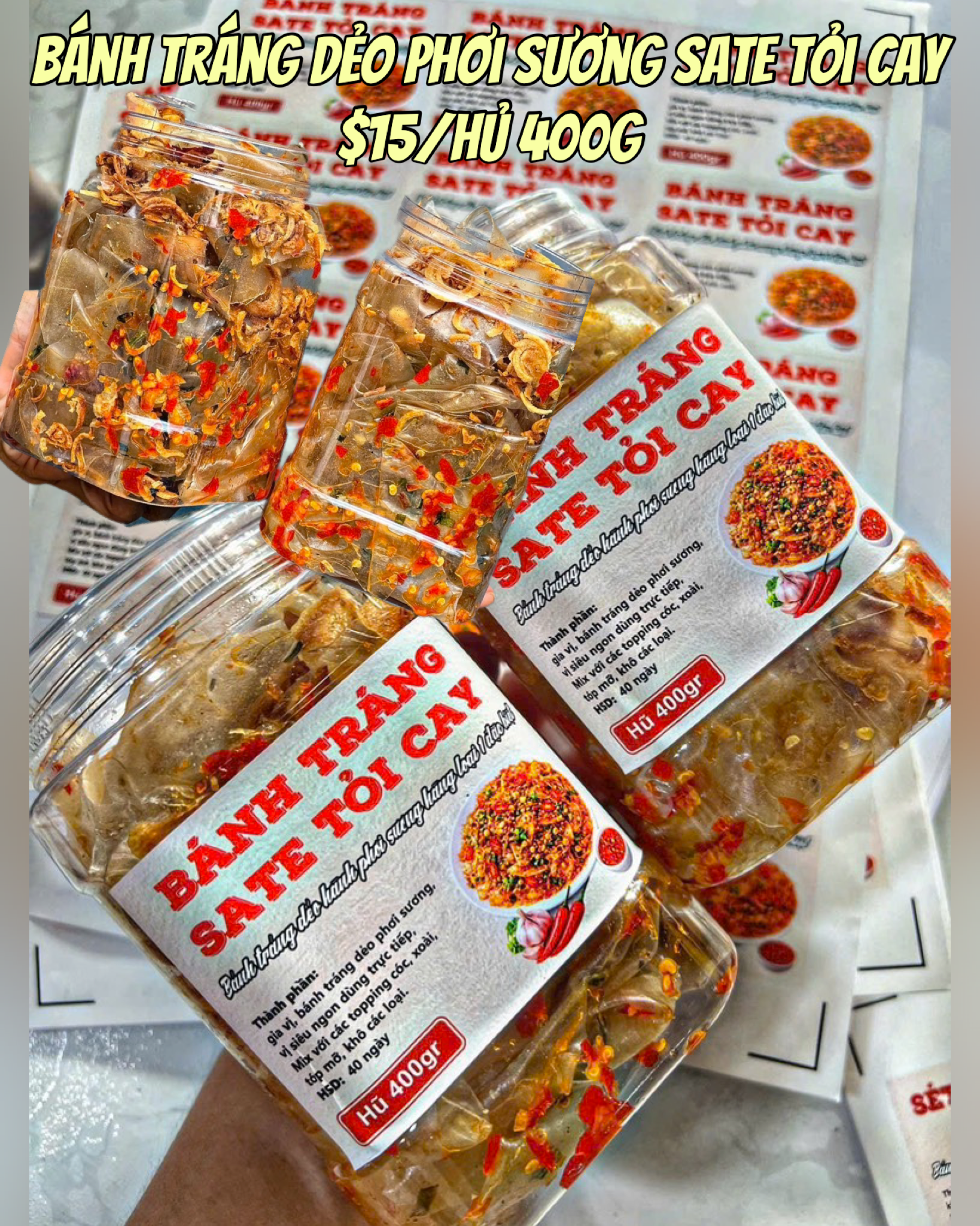 Bánh Tráng Dẻo Phơi Sương Sate Tỏi Cay (Hủ 400g)