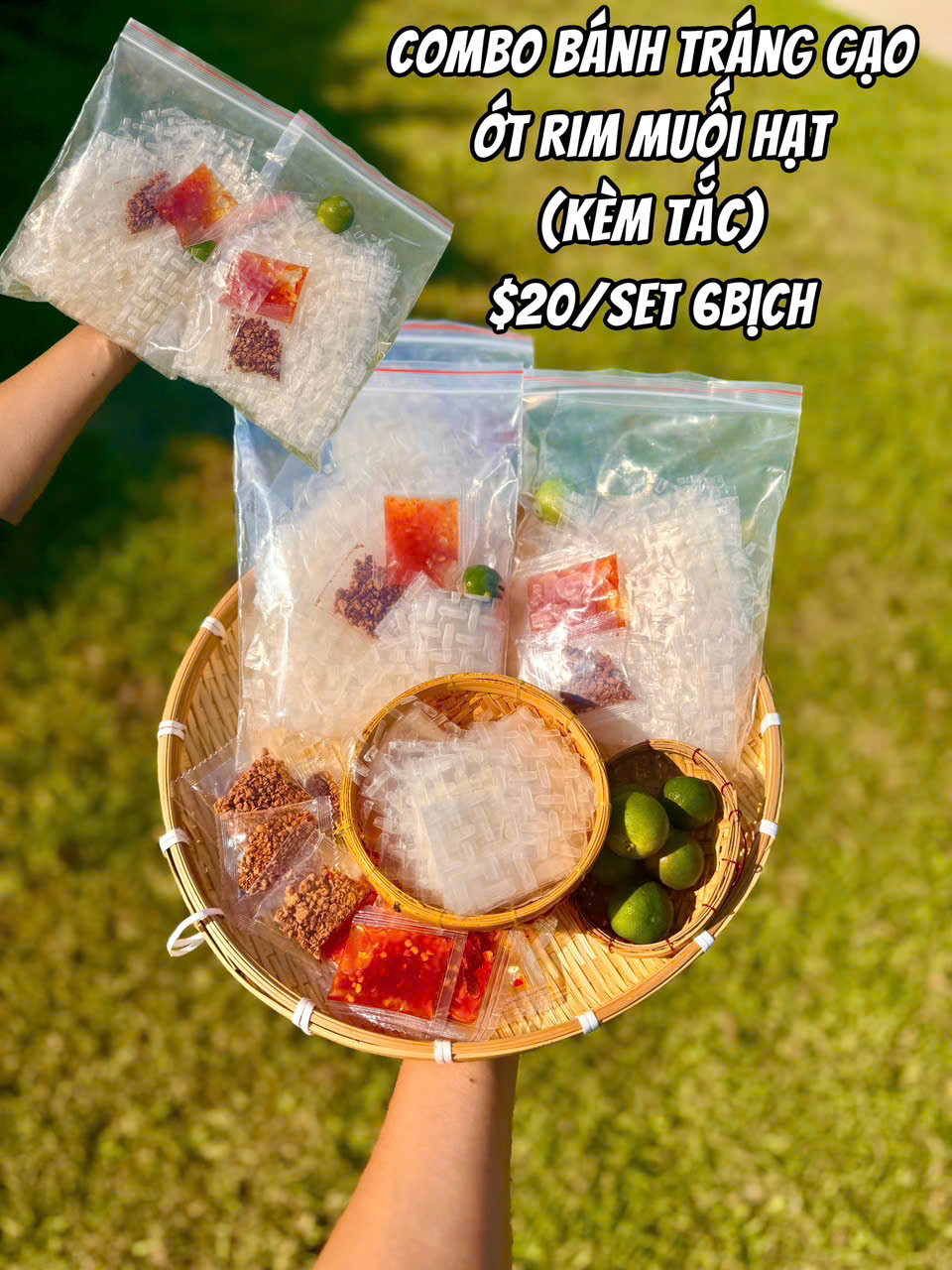 Combo SET Bánh Tráng Gạo Ớt Rim Muối Hạt ( Kèm Tắc ) / SET 6 bịch